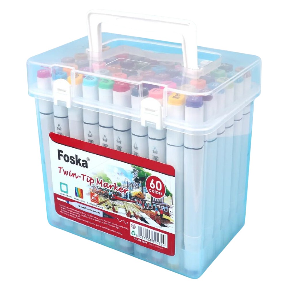Shpreheni kreativitetin tuaj në maksimum me setin profesional të markerave Foska me bojë alkooli. Ky set përmban 60 ngjyra të pasura dhe të qëndrueshme, ideale për vizatim, dizajn grafik, ilustruar apo punime kreative. Secili marker ka dy maja funksionale – një të trashë (7 mm) për mbushje të shpejtë dhe një të hollë (1 mm) për detaje precize, duke ju dhënë fleksibilitet të plotë në çdo projekt.