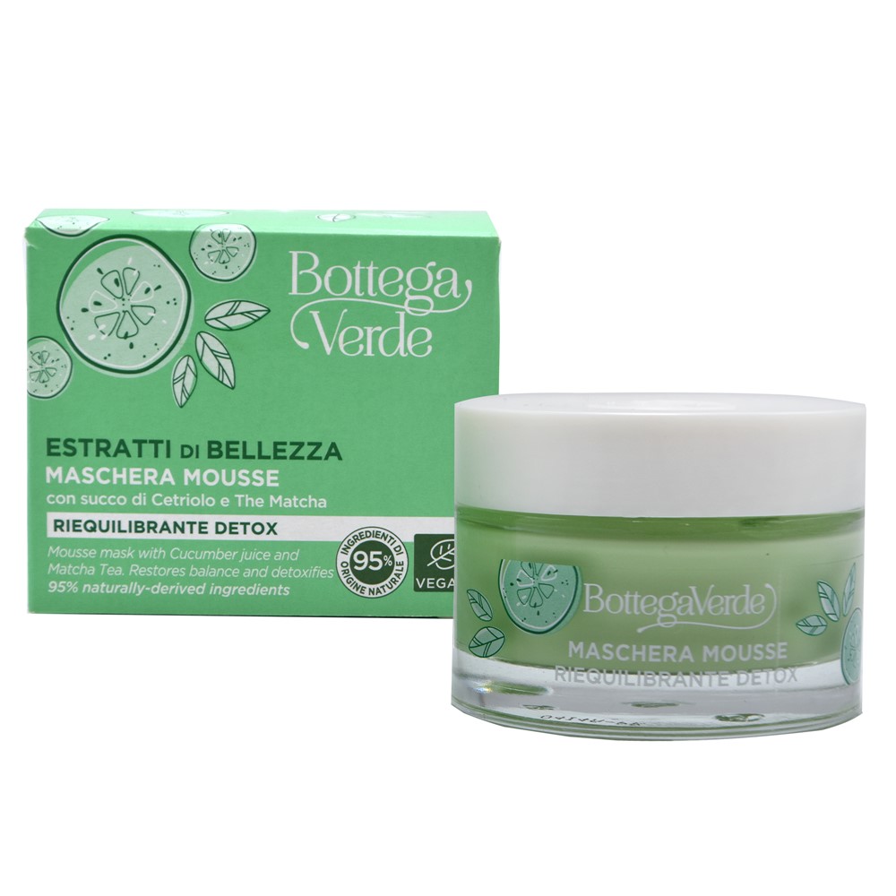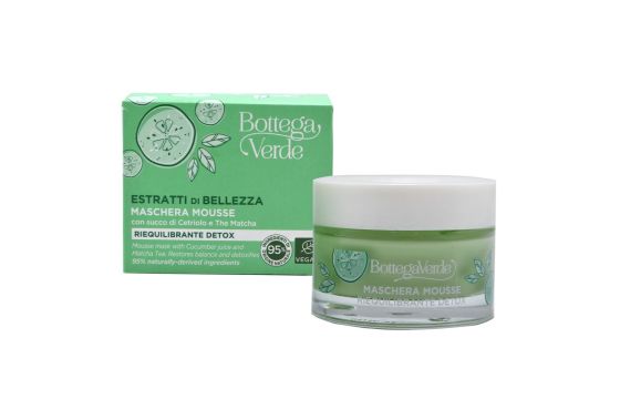 Maskë fytyre në formë shkume, Cucumber Juice & Matcha Tea, Beauty Extracts, Bottega Verde, 50 ml