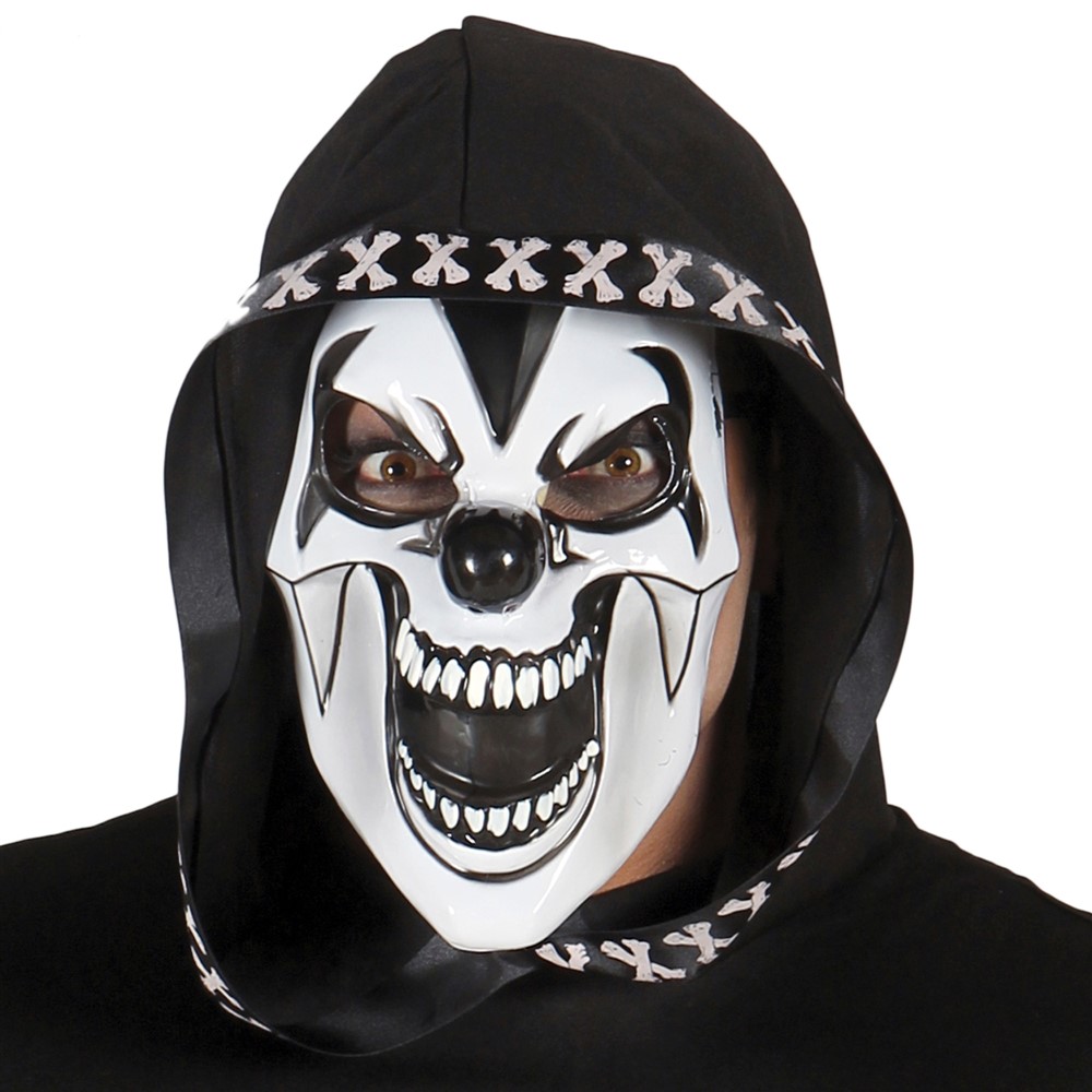 Maskë për Halloween, me Horror clown, prej materiali plastik, në ngjyrë të bardhë, është maska më e frikshme për të qënë sa më scary në festën e halloweenit. Mosha: 12 vjecn+