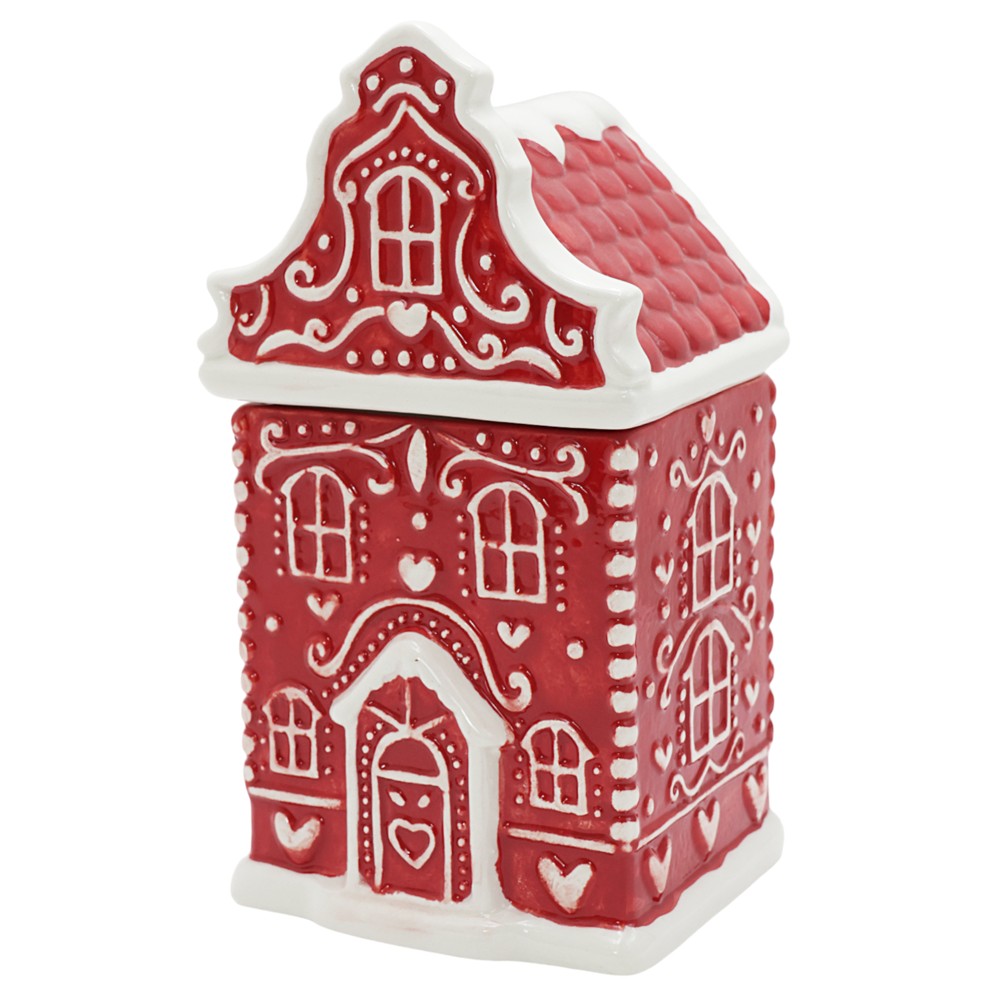 Po vlerësoni:Mbajtese biskotash, motive Christmas, Gingerbread House, porcelan, ngjyre e kuqe, 12.5x10x23.5 cm