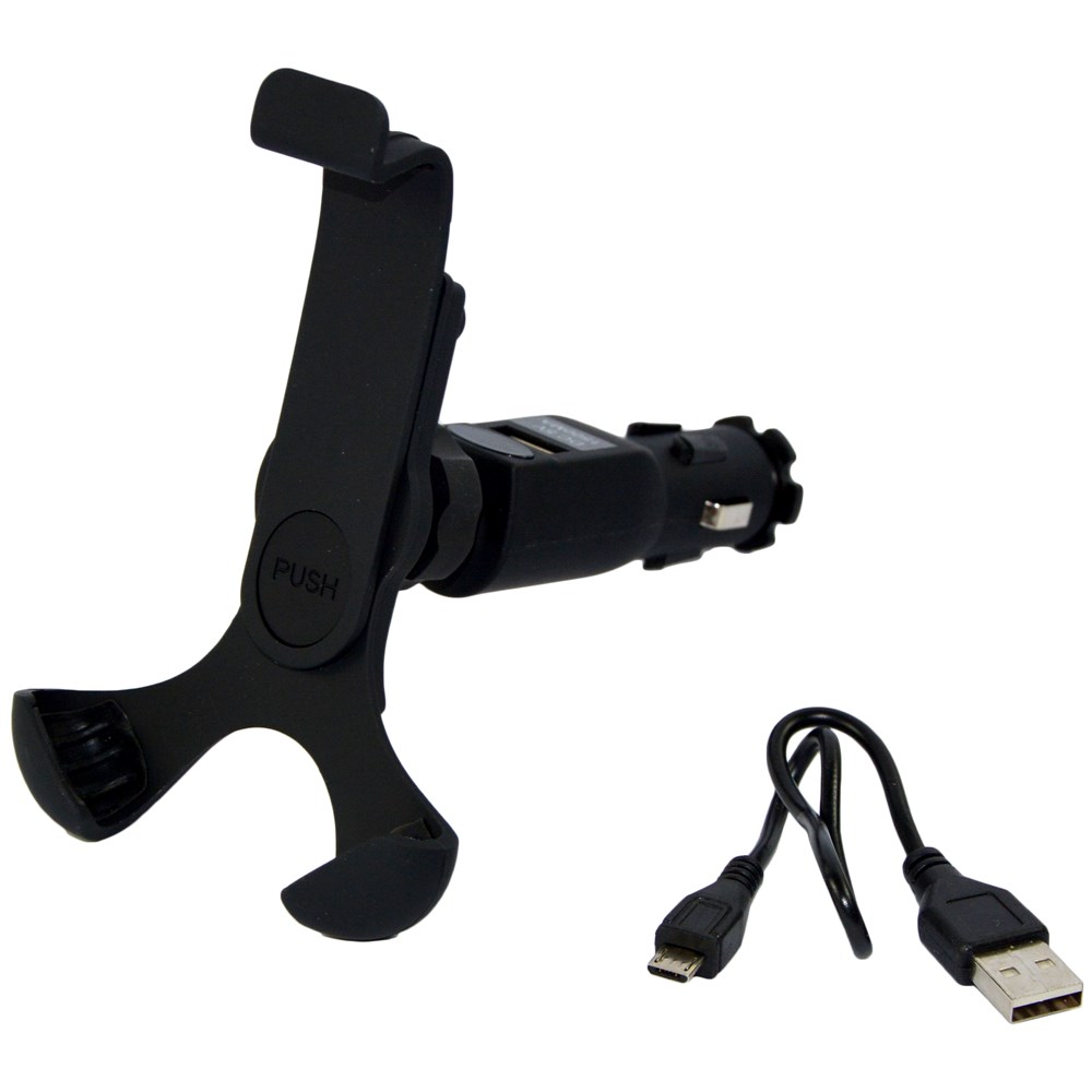 Mbajtese dhe Karikues celulari per makine është zgjidhje e përkryer për njerëzit aktive. Lejon akses të shpeshtë dhe të shpejtë të pajisjeve mobile me vetëm një dorë. Kjo mbajtëse universale është e përkryer për smartphone dhe pajisje GPS, fasheta prej gome që kapet në makine e shtrëngon në mënyrë të përkryer dhe e mban mjaft mirë pajisjen, ndërsa ngitni makinen. Ka nje porte karikimi (1 A) dhe eshte e pershtatshme per te gjithe telefonat deri ne 5.3" dhe per te gjithe MiniUSB, MicroUSB and iPhone/iPod/iPad.