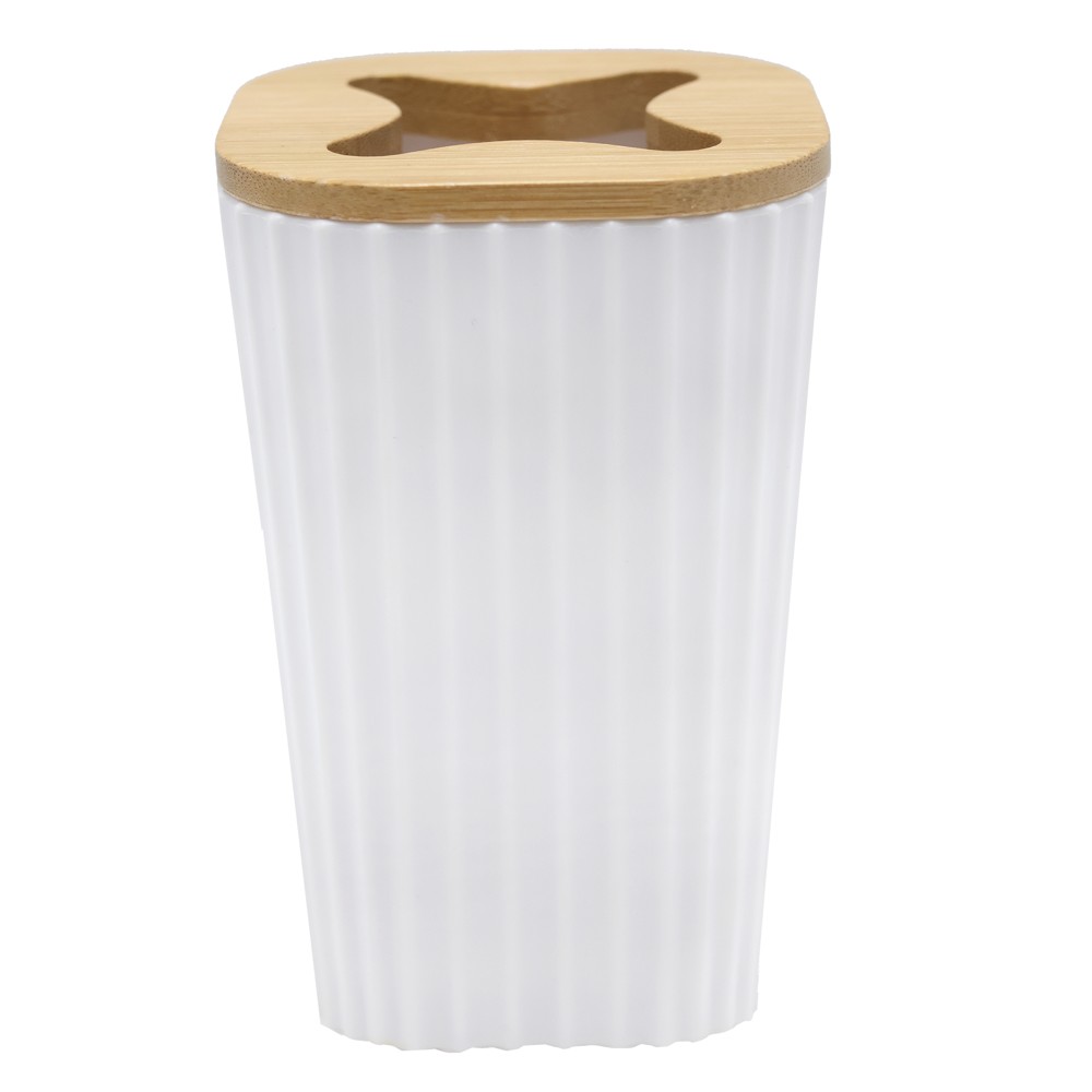Mbajtësja e furçës së dhëmbëve do të dhurojë një pamje të këndshme në dekorin e tualetit tuaj. Linjat e pastra gjeometrike e bëjne këtë mbajtëse zgjidhjen optimale për çdo tualet. Kombinimi i plastikës me drurin e bambusë, plotëson një shumëllojshmëri të stileve të brëndshme.
