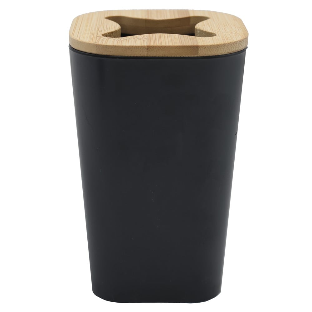 Mbajtëse furçe dhëmbësh, plastik/bambu, e zezë/bambu natyrale, 7.5x7.5xH12cm