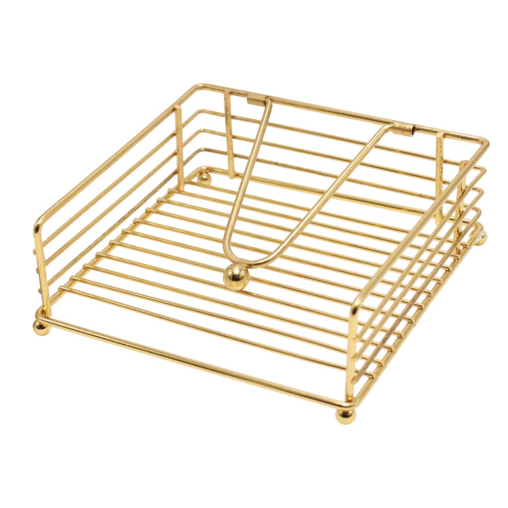 Mbajtëse kartopecetash metalike, me detaje floriri, me dimensionet 17x17xH8 cm. Ky produkt sjell një prekje dekorative në hapësirën tuaj dhe është ideale për organizimin e kartopecetave.