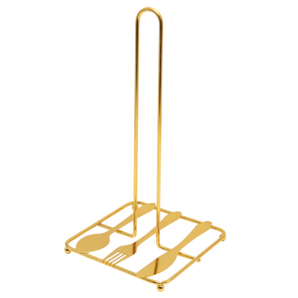 Mbajtëse kartopecetash metalike, me detaje floriri, me dimensionet 16x16xH29 cm. Kjo mbajtëse ofron një mënyrë elegante për të organizuar dhe ruajtur kartopecetat në kuzhinë.