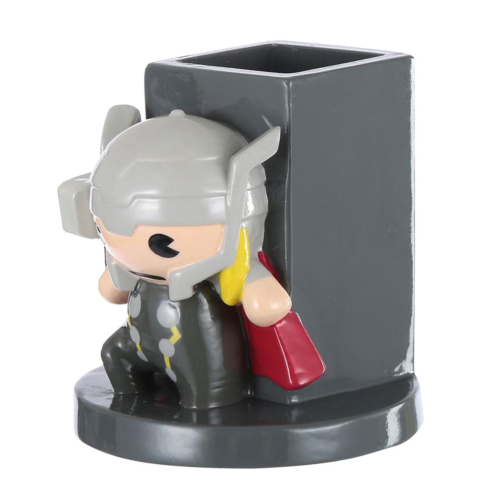Mbajtëse për lapsat me figurë Thor, prej materiali resini, me përmasa 8.8x8.8x9.2 cm, në ngjyrë të kuqe dhe gri të errët. Përdoret për të mbajtur lapsat, stilolapsat apo aksesorë të tjerë kancelarie, duke shmangur rrëmujën, ose si objekt dekorues për dhomat e gjumit të fëmijëve, për t'u vendosur në tavolinat e studimit, raftet e librave apo komodinat. Ky produkt është i përshtatshëm për përdorim nga fëmijë mbi 3 vjeç.