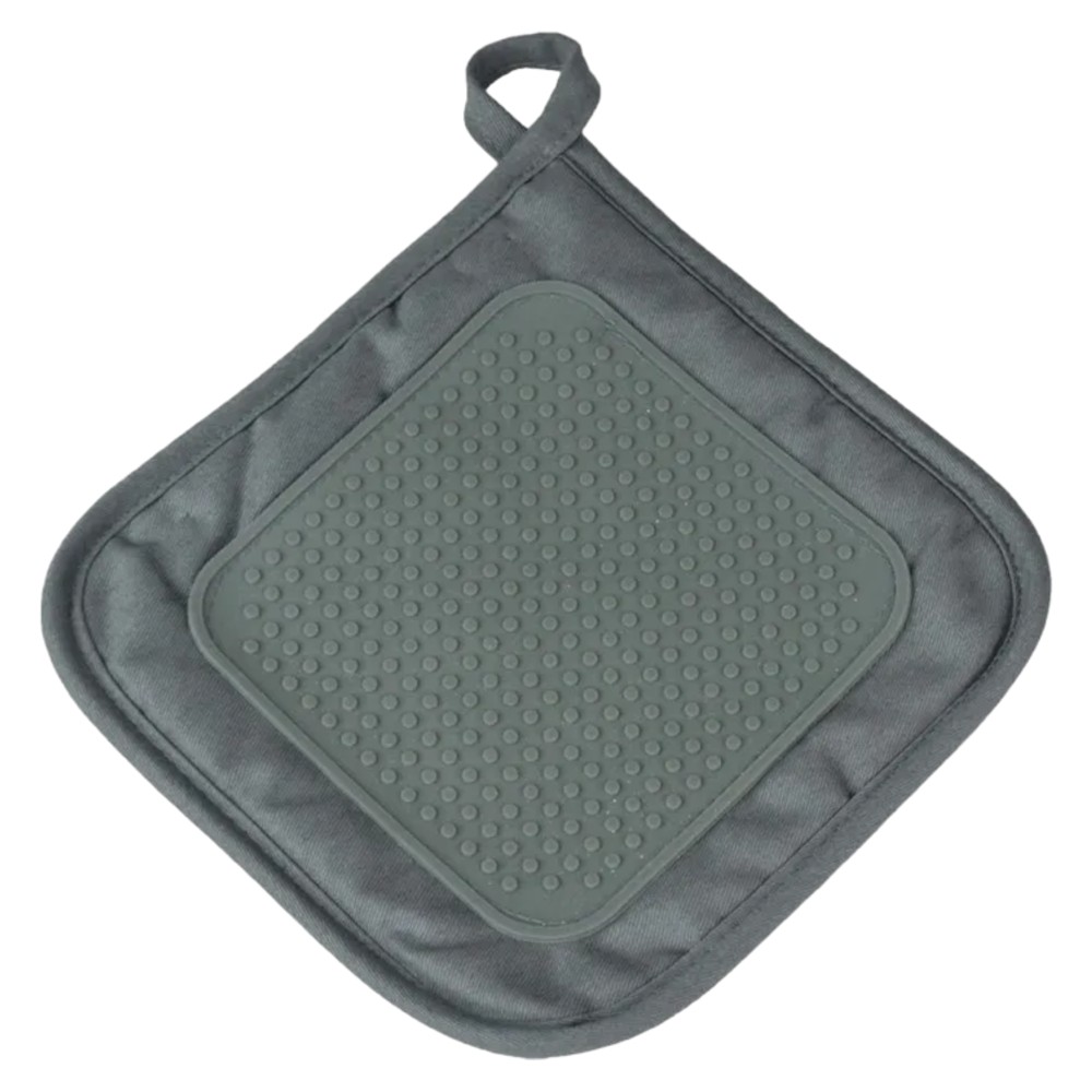 Kjo mbajtëse e tenxheres apo enëve të nxehta në kuzhinë, me përmasat 19x19 cm, ofron një mbrojtje të sigurt dhe të rehatshme për dorën tuaj gjatë përdorimit të enëve të nxehta. Pjesa kryesore është bërë nga pambuku, i cili është i butë në prekje. Ndërkohë, pjesa e jashtme është e bërë nga silikoni, i cili ofron një rezistencë të lartë ndaj nxehtësisë. Ngjyra gri i jep atij një pamje tërheqëse.