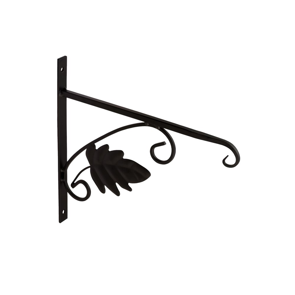 Mbajtëse për vazo lulesh, me dizajn gjethe, prej materiali çeliku, në ngjyrë të zezë, me përmasa 28x28.5 cm, i cili shërben si një aksesor dekorativ dhe funksional për ambientet e ndryshme. Materiali përbërës është i qëndrueshëm ndaj përdorimit, peshave të rënda, ndryshkut apo gërryerjes. Përdoret për vendosjen në mur të vazove dhe shportave të luleve, për dekorimin e ambienteve të jashtme profesionale dhe jo-profesionale.