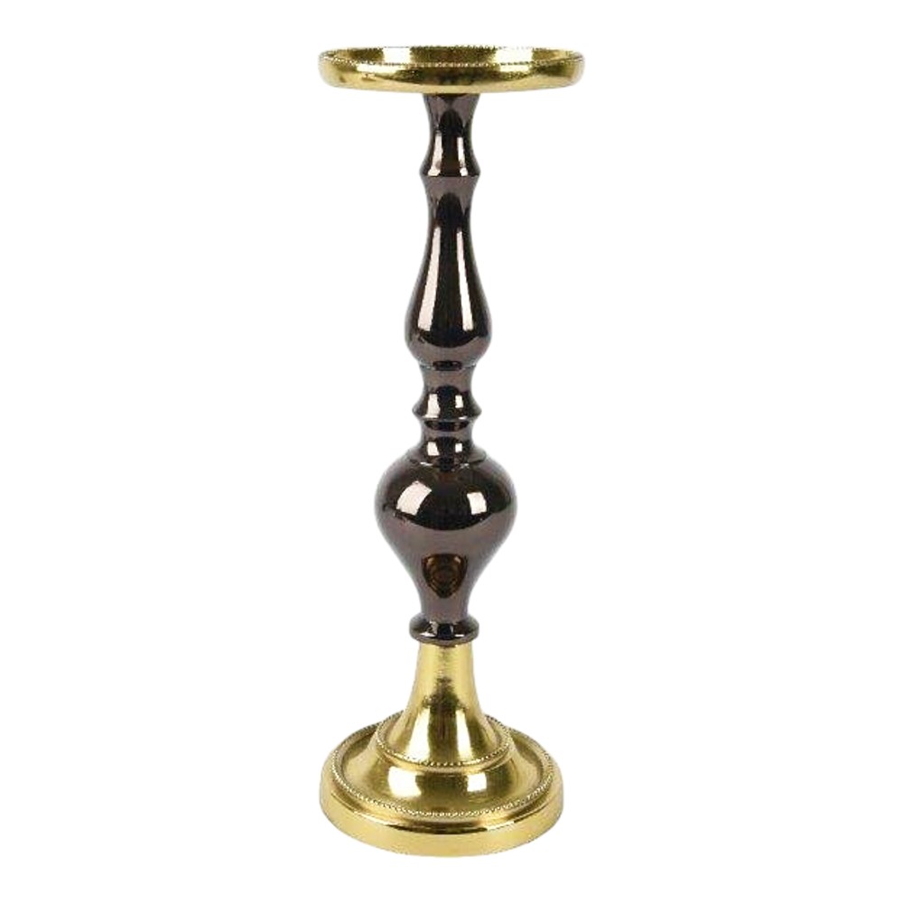 Mbajtëse qiriri, alumini, e zezë/floriri, 12x12xH35 cm