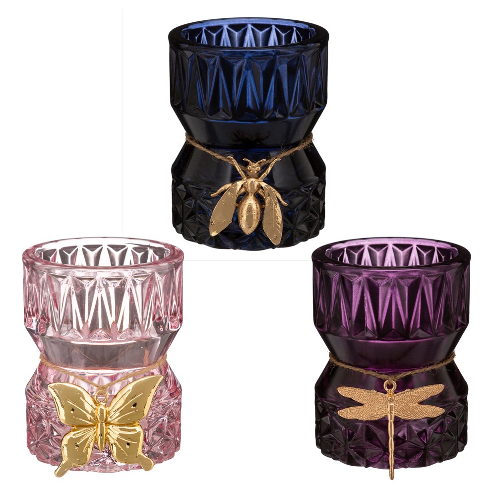 Mbajtëse qiriri, qelq, blu errët, H9 cm
