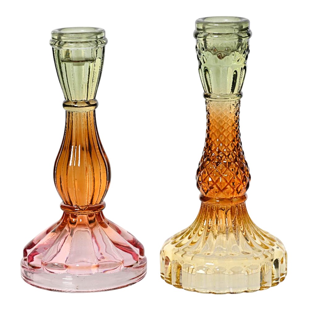 Mbajtëse qiriri, qelq, të ndryshme, Ø8.5xH16.5 cm