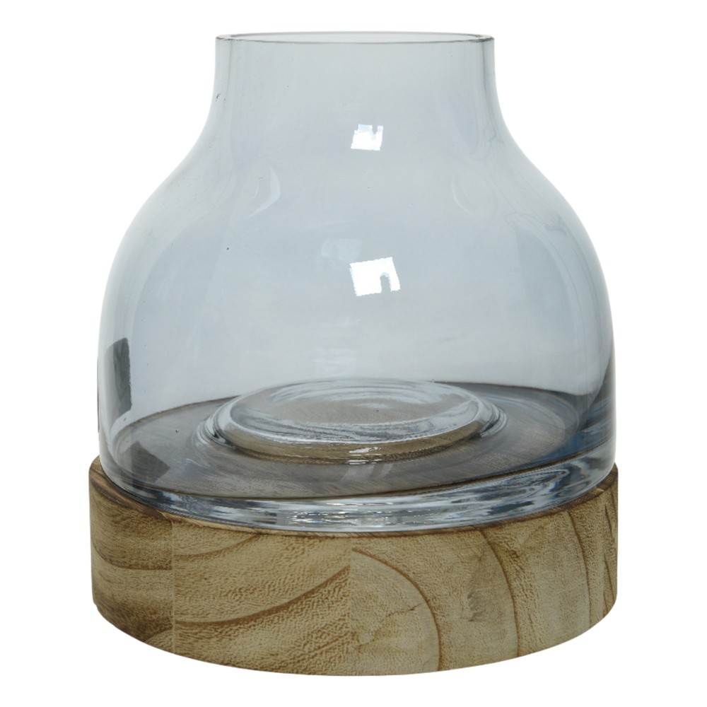 Kjo mbajtëse qiriu është një kombinim harmonik mes drurit natyral dhe qelqit transparent, duke sjellë një stil të ngrohtë dhe modern. Me përmasa Dia.16xH16.5 cm, ajo përbëhet nga një bazë prej druri që siguron stabilitet dhe një kupolë qelqi që mbulon qiriun. Është ideale për përdorim në ambiente të brendshme, si tavolina apo rafte, duke krijuar një atmosferë relaksuese dhe elegante.