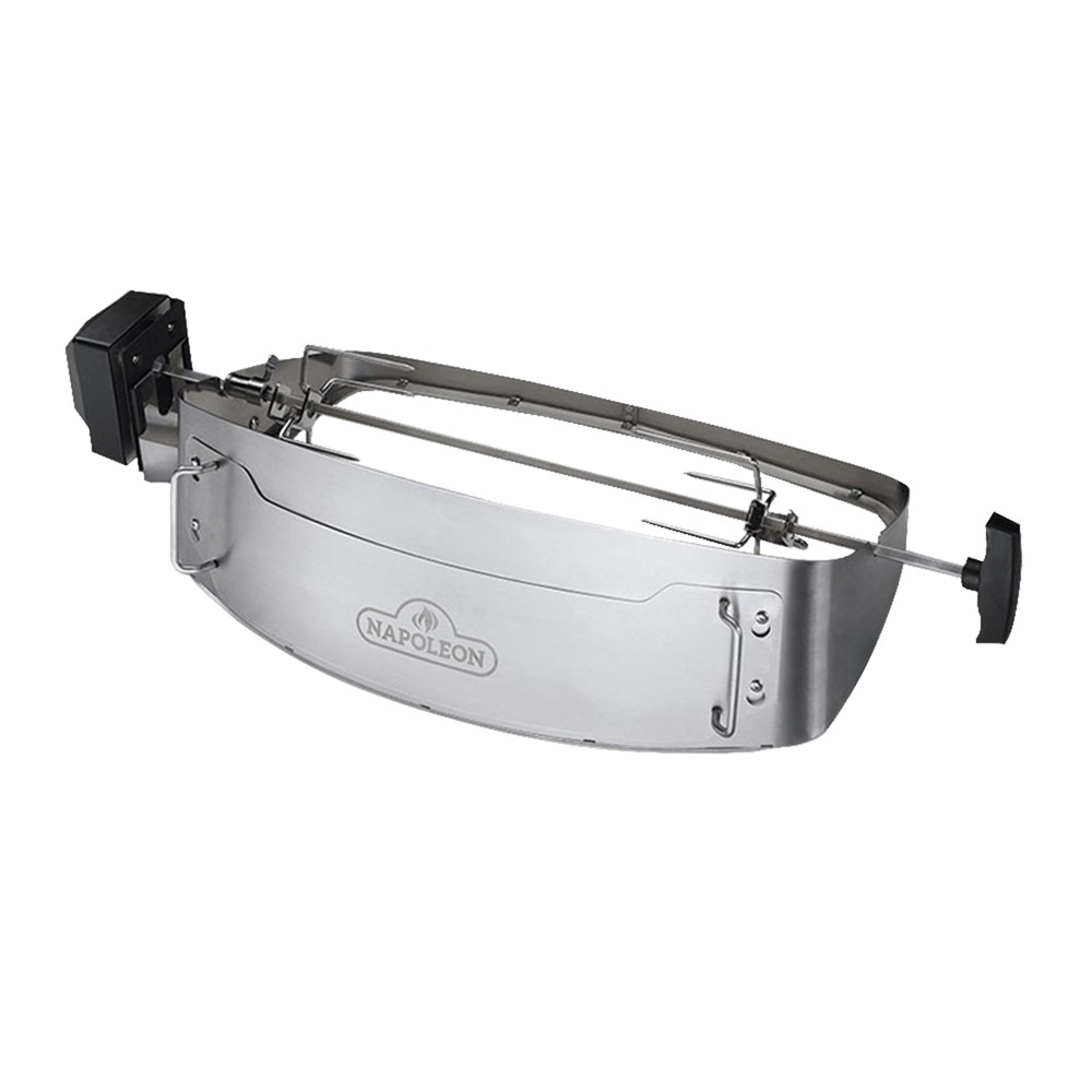 Me anë të kësaj mbajtëse të Napoleon, prej material celik inoksi, mund ta ktheni barbekjunë në një furrë për pica dhe një skarë për rostier. Kjo mbajtëse është e pajisur me një derë e cila lehtëson procesin e pjekjes së picës. Ajo përshtatet lehtësisht në barbekjutë e modelit Travel Q ( kodi 7807593, 7807594 ). Paketimi përfshin një motor rostieri, shufrën dhe dy pirunët e rostierit, si dhe mbajtësja prej celik inoksi. E lehtë për t'u pastruar dhe tepër praktike në përdorim.