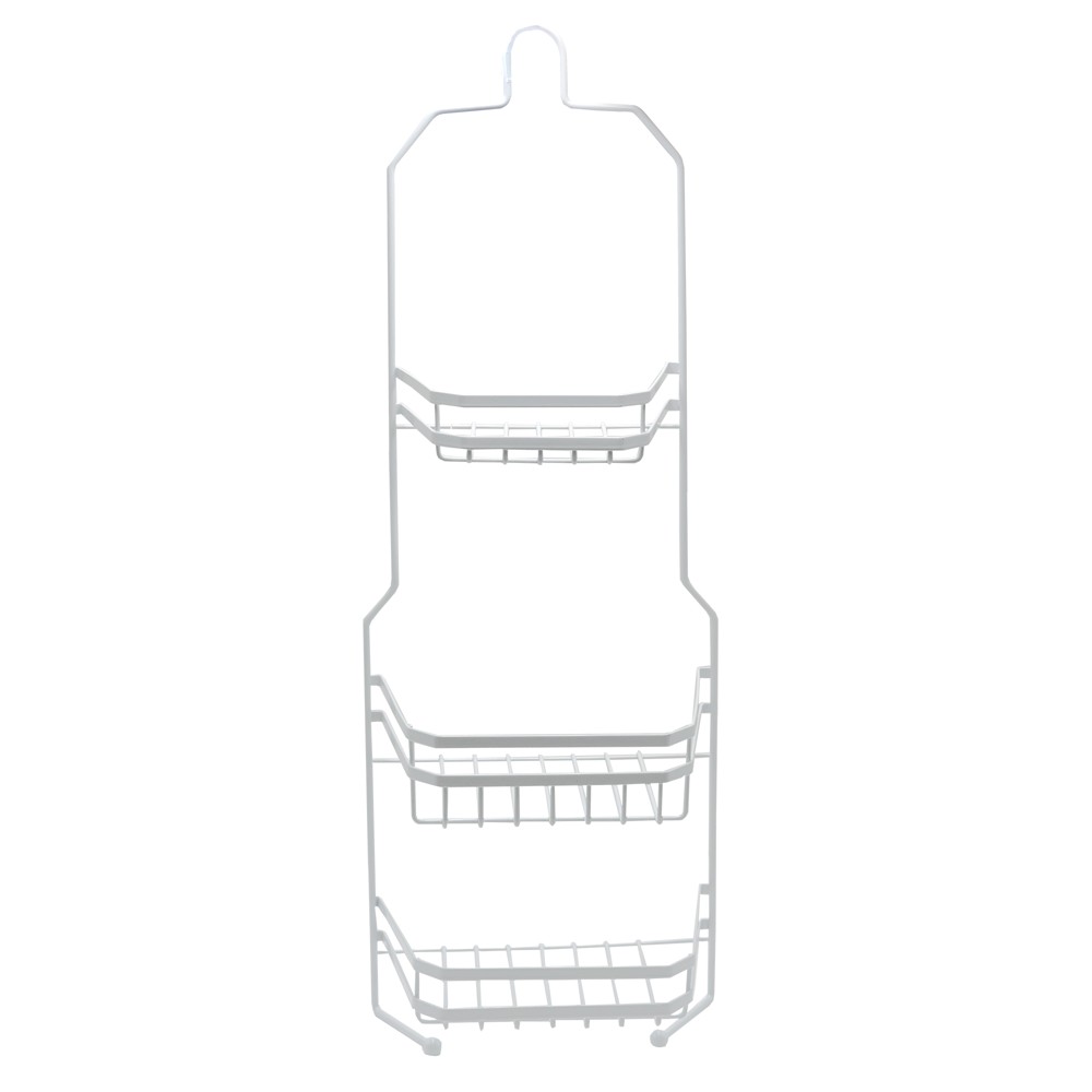 Po vlerësoni:Mbajtëse shampo, 3 nivele, e varur, metal, e bardhë, 10x22xH64cm