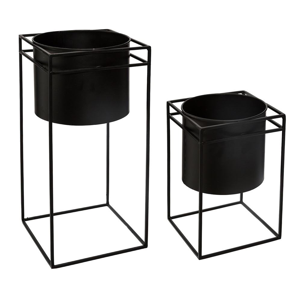 Mbajtëse vazo lulesh(x2), metal, e zezë, 16x16xH25 cm; 18x18xH40 cm