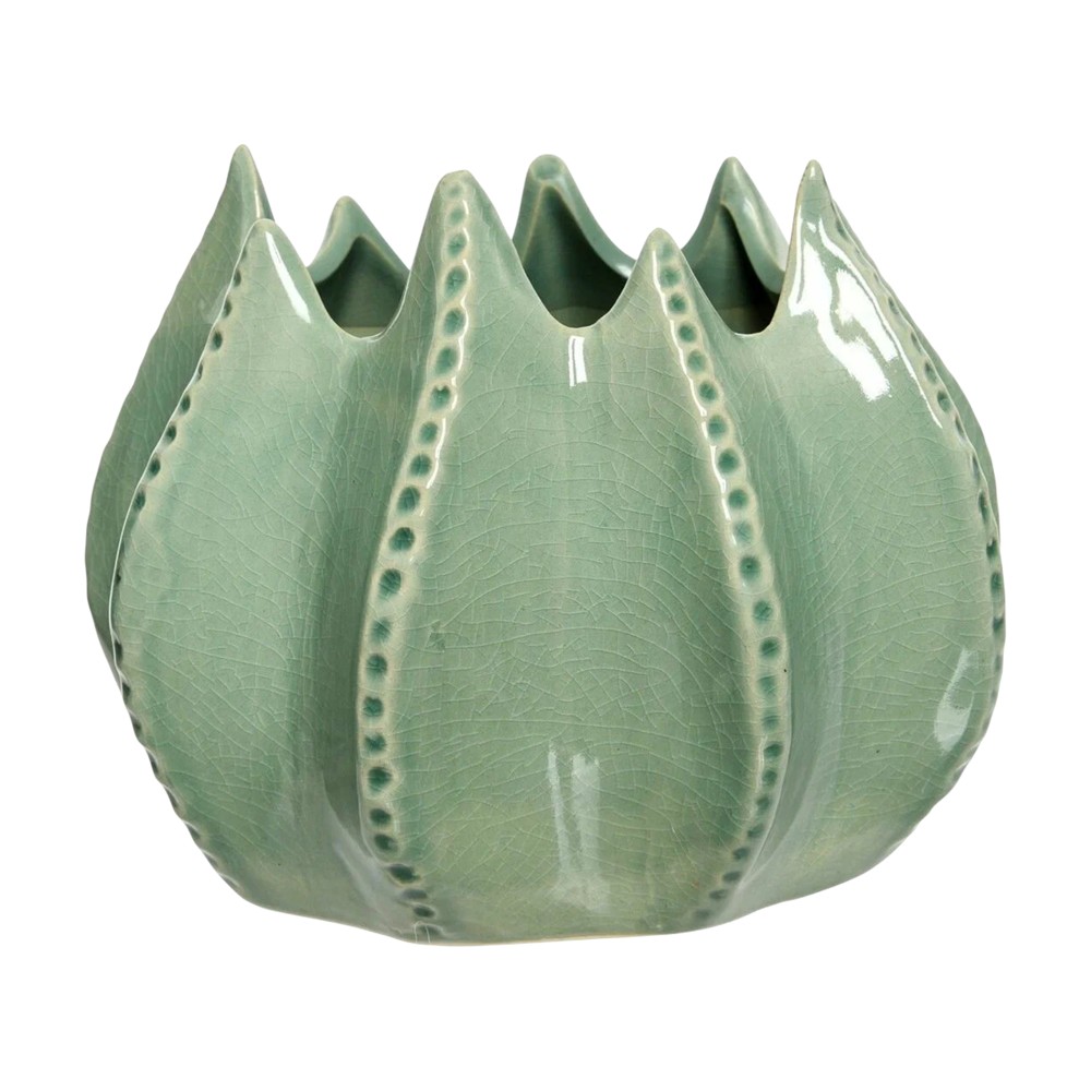 Shtoni një prekje elegance dhe ngrohtësie ambientit tuaj me këtë mbajtëse qiriri të punuar nga qelqi në ngjyrë jeshile të butë. Me dimensionet 16 x 16.5 x H12 cm, kjo pjesë dekorative kombinon funksionalitetin me stilin. Forma unike dhe ngjyra e thellë krijojnë një atmosferë të qetë dhe relaksuese, ideale për përdorim në sallon, dhomë gjumi apo edhe në ambiente të jashtme.