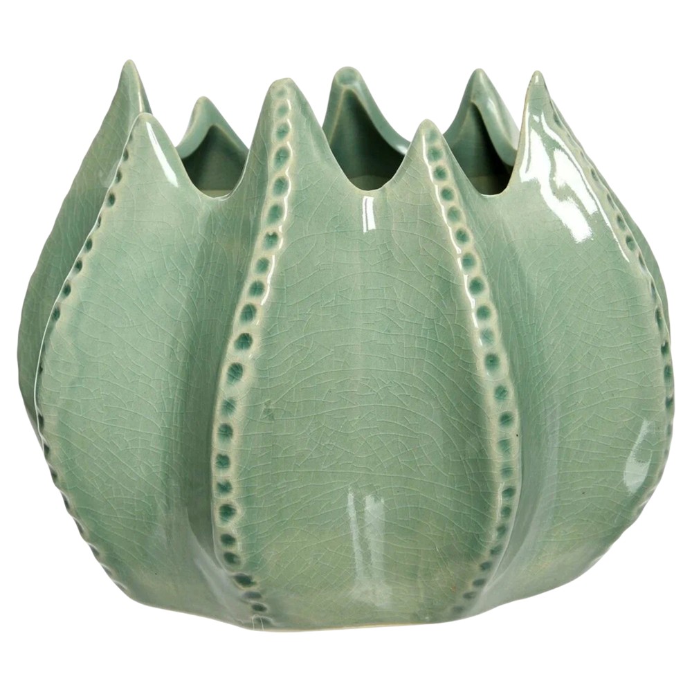 Shtoni një prekje magjie dhe elegance në ambientin tuaj me këtë mbajtëse qiriri prej qelqi jeshile, e dizajnuar për të reflektuar dritën në mënyrë të mahnitshme dhe për të krijuar një atmosferë relaksuese dhe të ngrohtë. Me formatin e saj të bollshëm (21 x 21.5 x H16.5 cm), kjo pjesë dekorative është perfekte si qendër tavoline, në një komodinë apo edhe si element ndriçues në ambientet e jashtme. Ngjyra jeshile i jep një ndjesi qetësie dhe lidhjeje me natyrën, ndërsa struktura prej qelqi pasqyron hijshëm dritën e qiririt, duke krijuar një lojë të butë nuancash dhe reflekse.