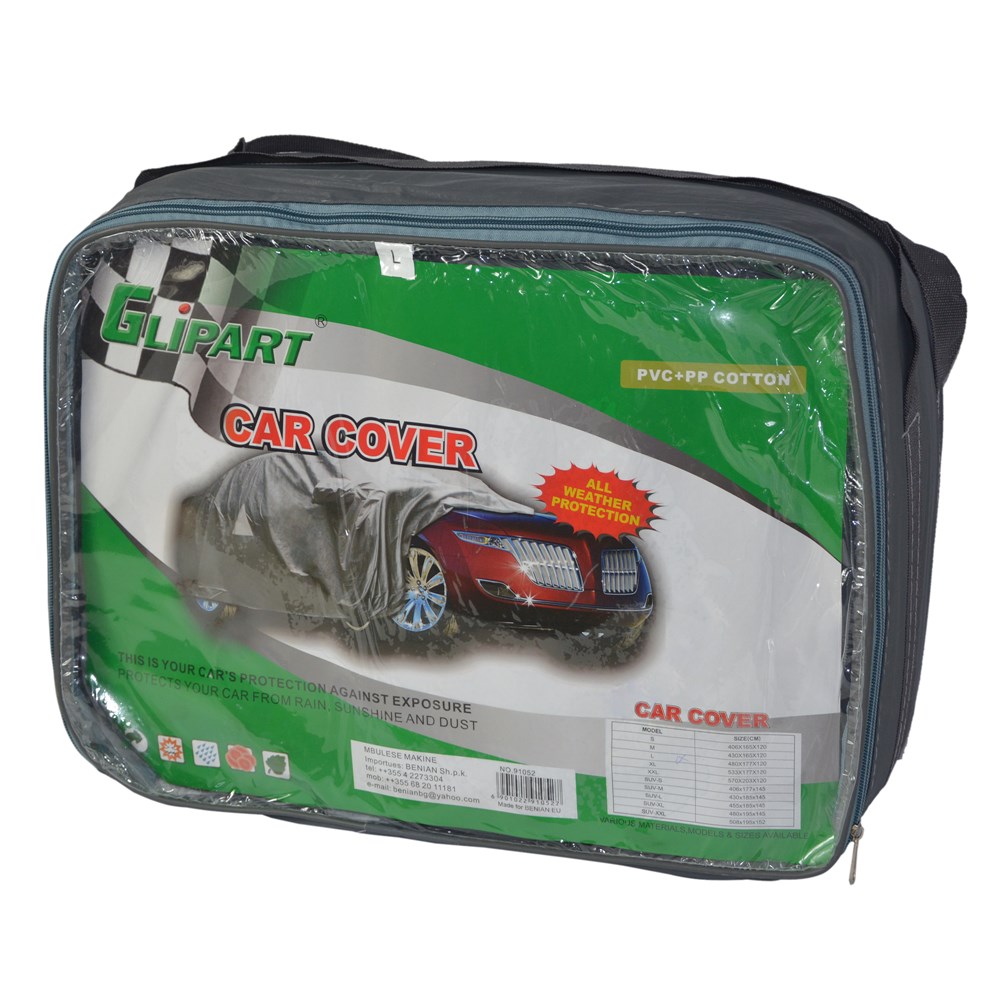 Mbulese makine GP-91052 e ndertuar prej materiali polietilieni shume rezistent, e papershkueshme nga uji dhe rezistente ndaj rrezeve te diellit. Mbulon lehtesisht makinen dhe fale formes se saj eshte shume elastike dhe e qendrueshme ne mot me ere. Lehtesisht e palosshme dhe nuk ze shume hapsire per tu mbajtur ne bagazhin e makines.