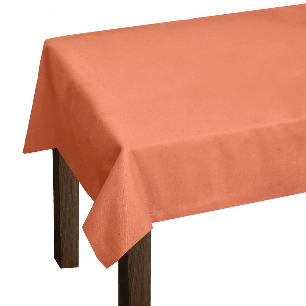 Mbulesë tavoline, në përmasë 140x180 për 6 persona, pa 6 peceta. Mbulesa është në ngjyrë portokalli të mbyllur. E përshtatshme për familje, e restorante.