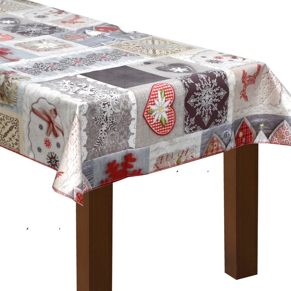 Mbulesë tavoline në formë drejtkëndëshe, prej materiali plastik, me dizajn Krishtlindjesh. Materiali përbërës është rezistent ndaj larjes, nuk thith yndyrë, ruan rrudhat, pastrohet lehtë. Përdoret kryesisht në ambiente shtëpiake, për festa si Krishtlindjet dhe Viti i Ri.