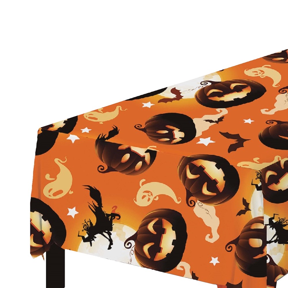 Mbulesë tavoline prej materiali plastik, me dizenjo kungujsh, në përmasë 137x274 cm. Ideale për dekorin e tavolinës për festën e halloween.
