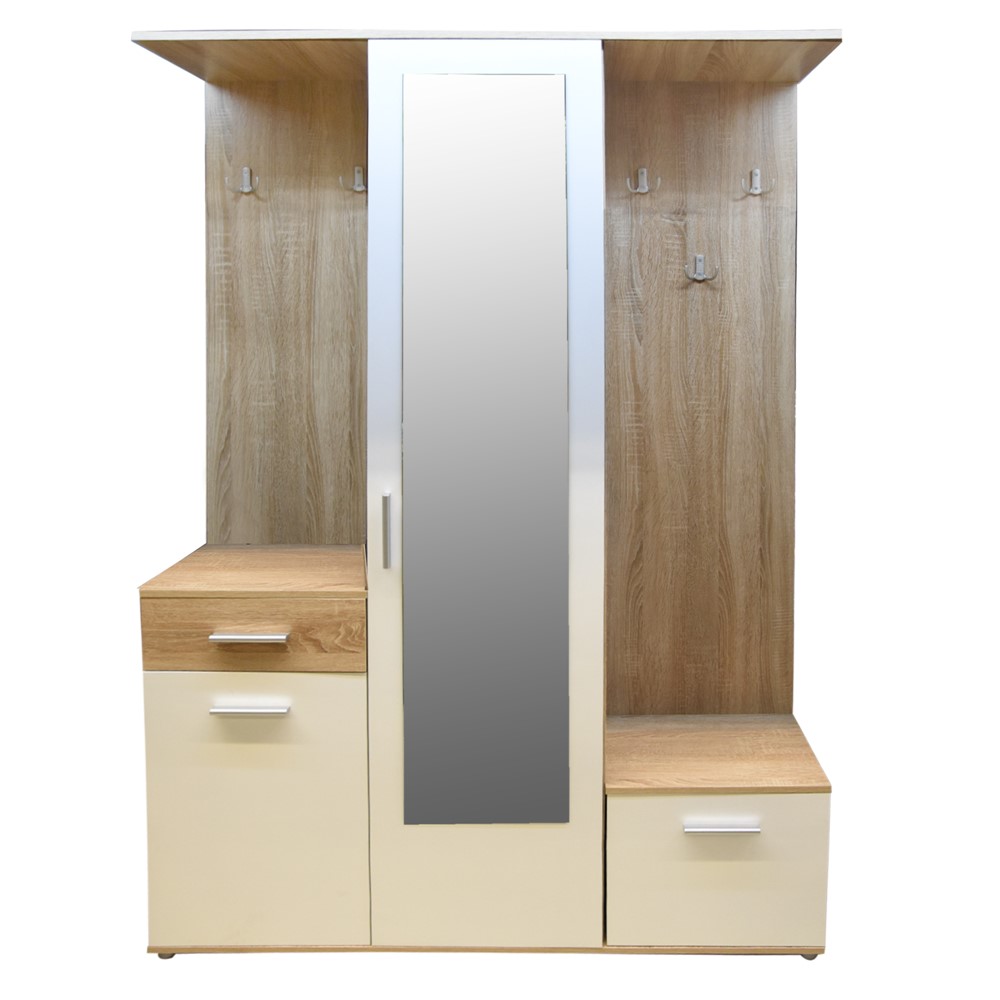 Mobilje koridori (portmando) MARTIN (3-dyer (1 me pasqyrë), 1 sirtar) do të bëjë kontaktin e parë me shtëpinë tuaj efektive dhe miqësore. Ky model përmban një hapësirë të përdorshme të organizuar harmonike për ruajtjen e rrobave dhe këpucëve sezonale dhe ju mundëson të arrini hapësirë të organizuar funksionale, ndërsa pasqyra e pozicionuar në qendër sjell një ndjenjë hapësire.