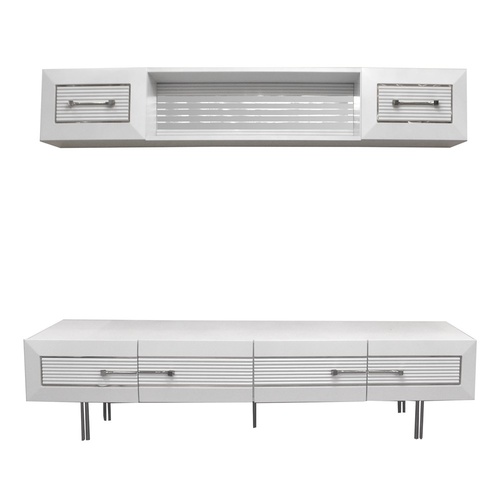 Po vlerësoni:Mobilje televizori dhe ekspozitor, Shine, këmbë metalike, melaminë, e bardhë