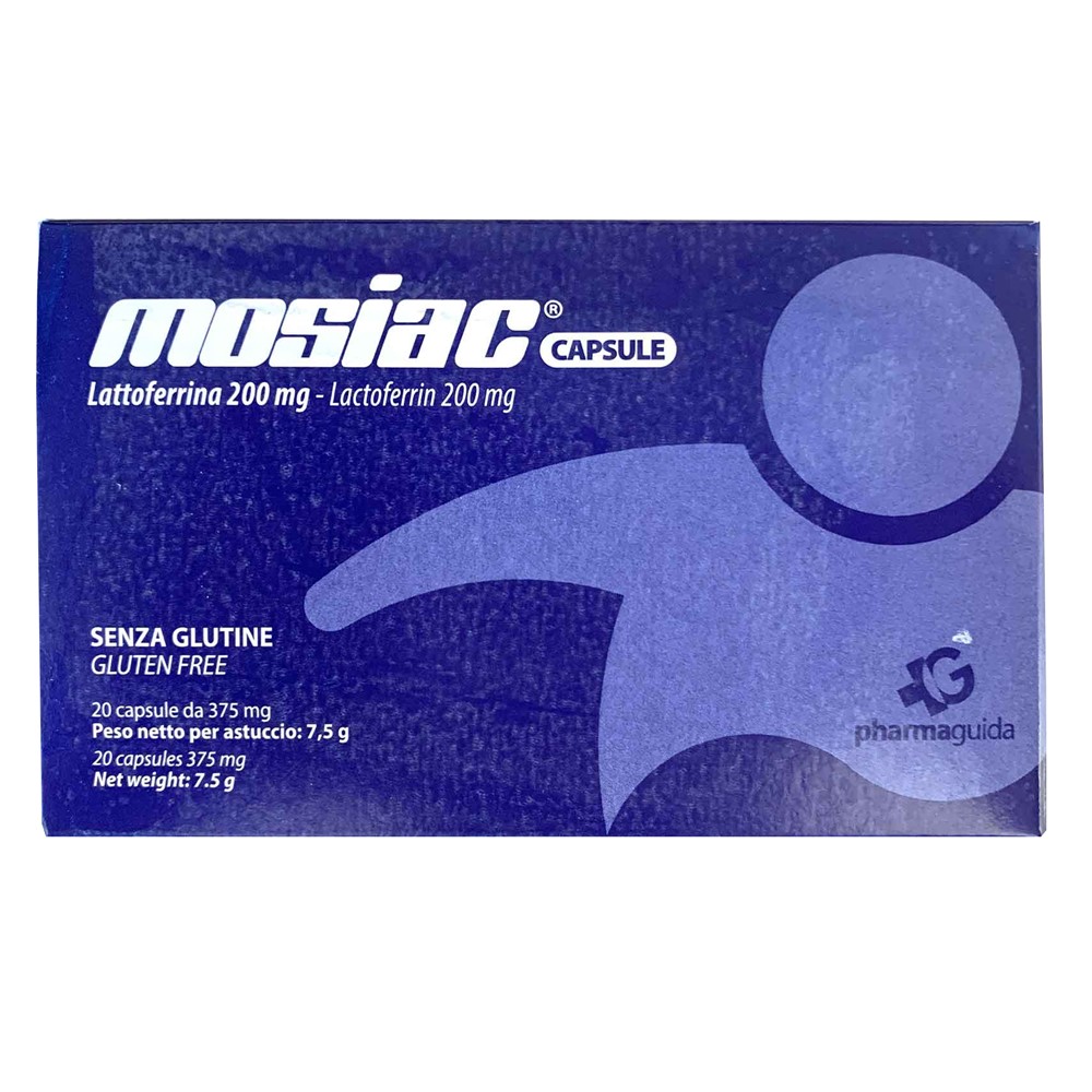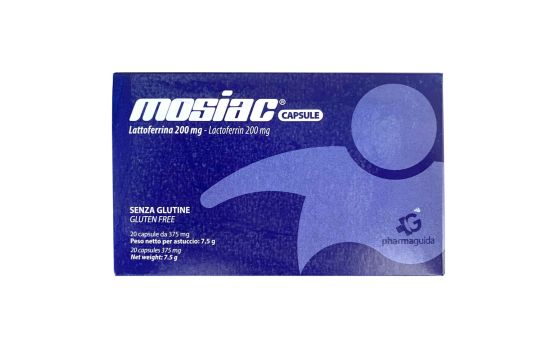 Mosiac eshte nje shtese ushqimore me Laktoferrine, e cila indikohet ne rast te mungeses ne rastin e nevojes se shtuar per Laktoferrine. Menyra e perdorimit: 1 kapsule ne dite me nje gote uje.