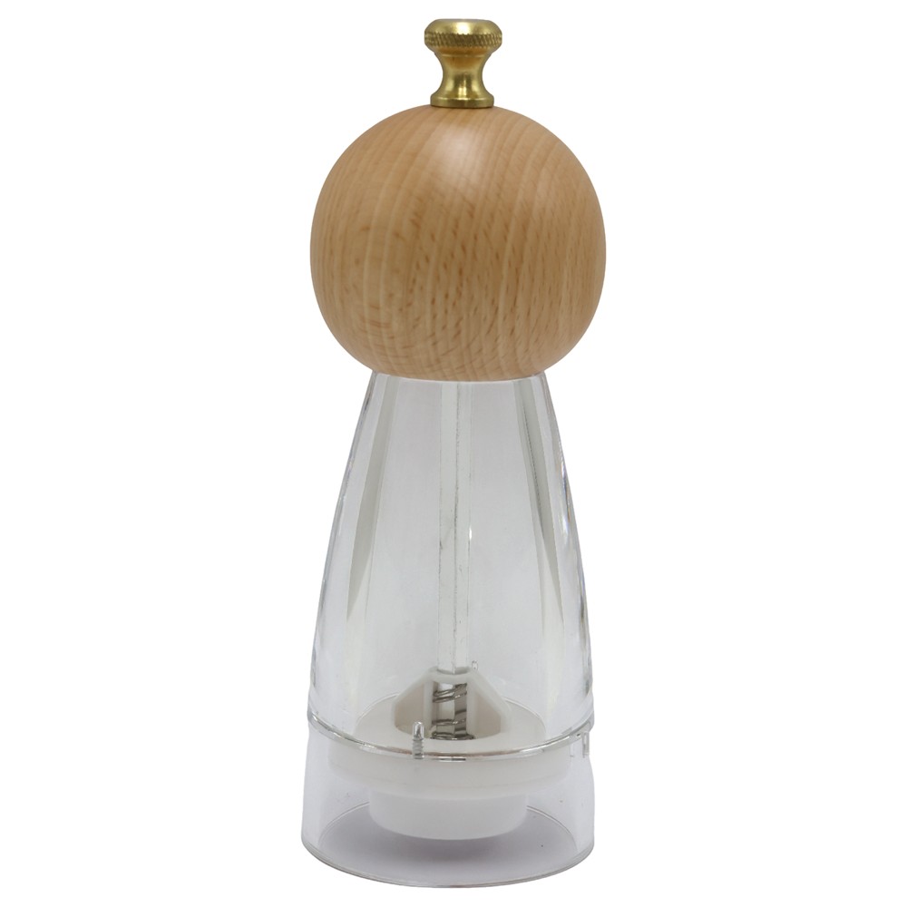 Ky mulli piperi ose kripe, i kombinuar me qelq transparent dhe bambu natyrale, sjell një elegancë të pastër dhe moderne në tryezën tuaj. Me një diametër 6 cm dhe lartësi 15 cm, ai ka një formë të lehtë për t’u mbajtur dhe përdorur, ndërsa materiali transparent lejon të shihni përmbajtjen dhe sasinë e saj në çdo moment. Kapaku i bambusë me ngjyrën e tij të ngrohtë natyrale i shton një prekje organike dhe estetike, duke e bërë këtë mulli jo vetëm funksional, por edhe një element dekorativ. Mekanizmi i bluarjes siguron përpunim të imët dhe të njëtrajtshëm, duke e bërë çdo vakt më aromatik dhe të freskët. Elegant, praktik dhe i qëndrueshëm — një aksesor i vogël që sjell stil në çdo kuzhinë.