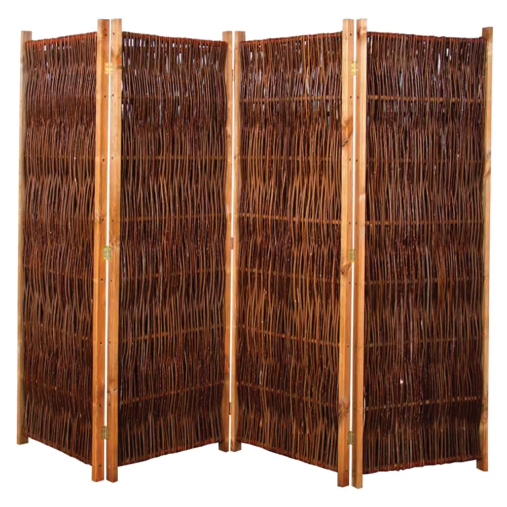 Ndarese ambjenti prej shelgu janë punuar me dorë me kujdes dhe vendosur në një kornizë prej pishe të lyer me ngjyrë kafe. Degët e ndërthurura të shelgut dhe lajthisë janë trajtuar gjithashtu me vaj për të rritur qëndrueshmërinë dhe jetëgjatësinë e tyre. Përveç funksionalitetit praktik, këto gardhe tërheqin vëmendjen edhe me pamjen e tyre dhe natyrale. Ju mund të shijoni rrezet e diellit dhe natyrën përreth në një ambient të qetë. Falë lartësisë prej 180 cm, gardhi ofron edhe privatësi të mirë, duke ju lejuar të shijoni qetësinë tuaj edhe kur fqinjët ndodhen në kopshtin e tyre ngjitur.