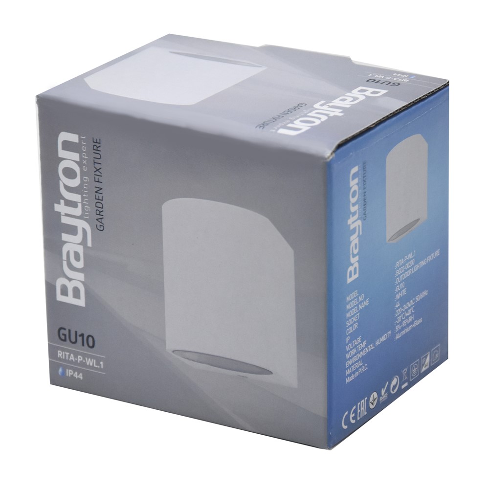 Po vlerësoni:Ndriçues i jashtëm mural BRAYTRON, 1xGU10, metal/xham, IP44, ngjyrë bardhë