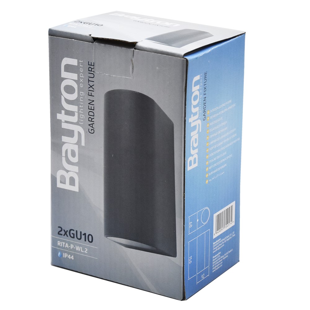 Ndriçues i jashtëm mural BRAYTRON, 2xGU10, metal/xham, IP44, ngjyrë të zezë