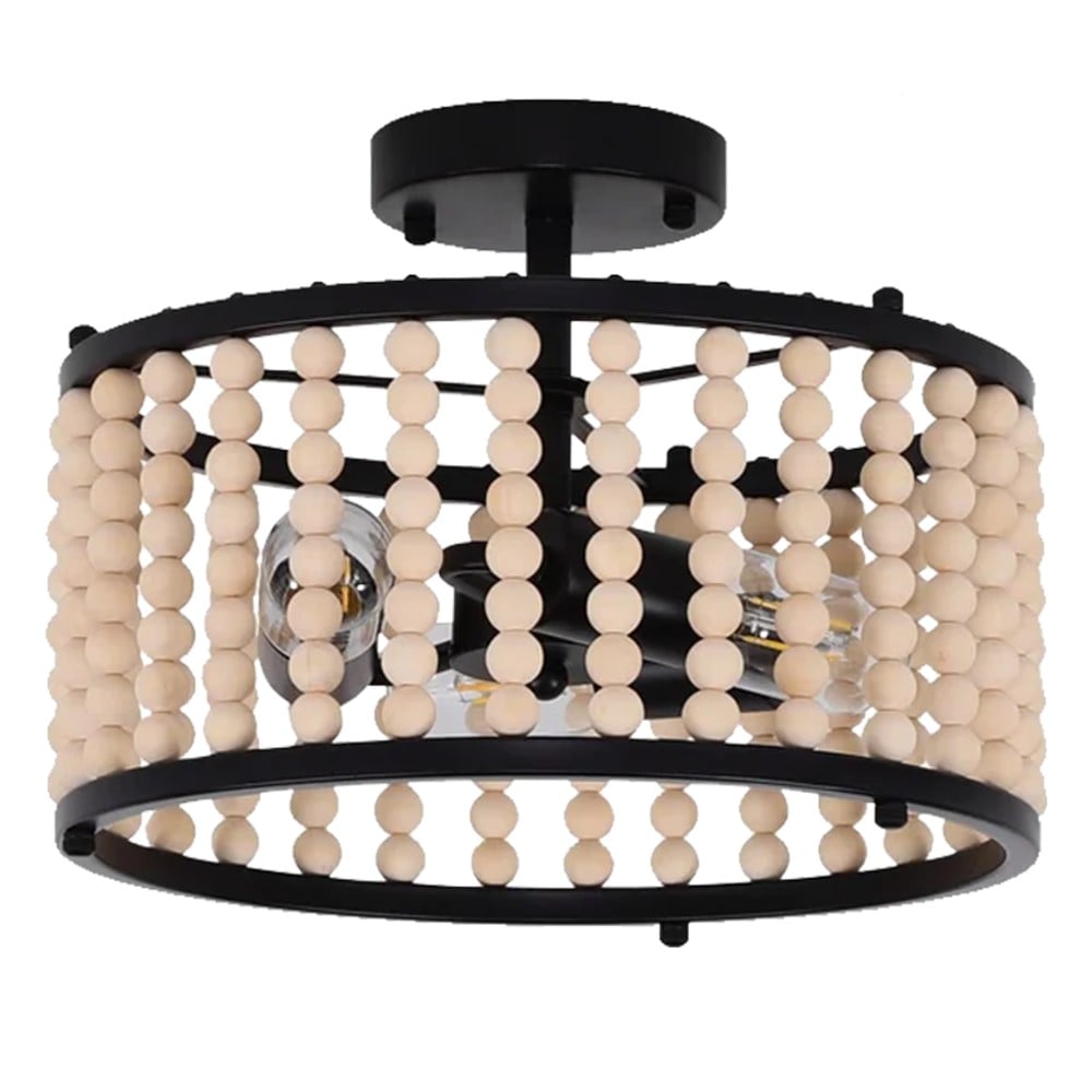 Po vlerësoni:Ndricues i varur, 3xE27, druri, kafe/e zeze, D.32cm, H.22cm