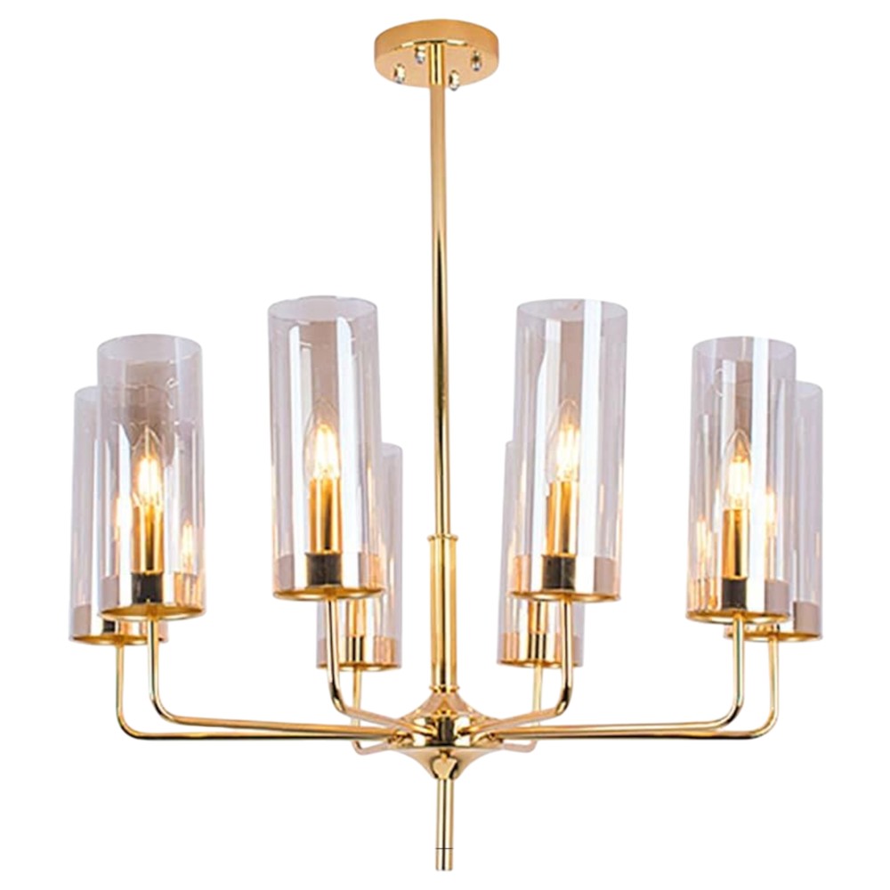 Ndriçues i varur me 6 burime drite E14, diametër 50 cm, prej metali dhe qelqi në ngjyrë bronze. Stil elegant dhe klasik, ideal për sallone, dhoma ngrënieje apo ambiente luksoze me atmosferë të ngrohtë dhe sofistikuar.