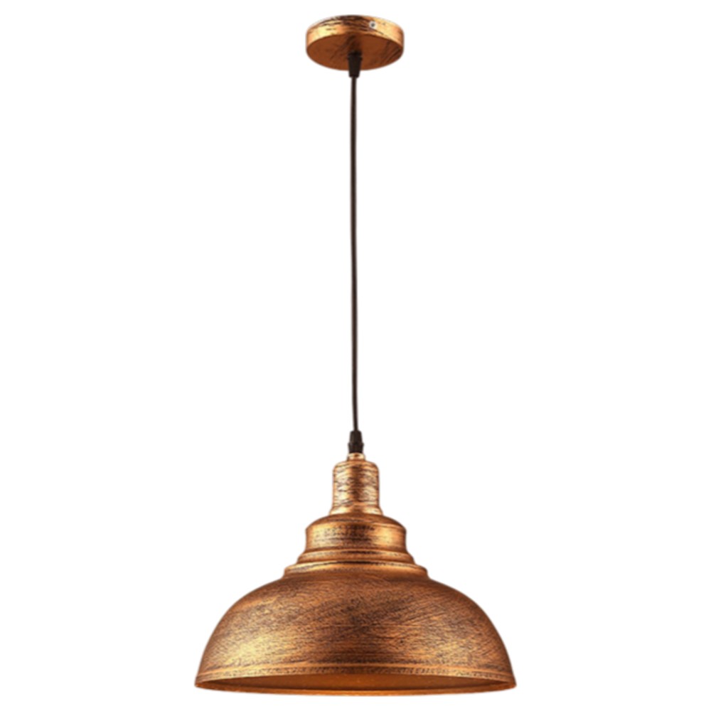 Ndriçues i varur me bazë E27, diametër 29 cm, lartësi 25 cm, prej metali në ngjyrë bronze. Dizajn elegant dhe klasik, i përshtatshëm për ambiente me stil të ngrohtë dhe sofistikuar.