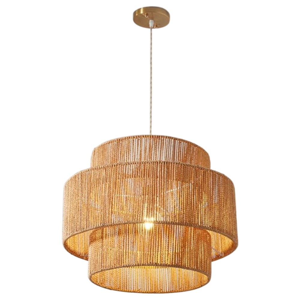 Ndriçues i varur me portollambe E27, me diametër 38/45 cm. I realizuar nga fije natyrale, ofron stil natyral dhe dekorativ, ideal për ambiente të ngrohta dhe moderne.