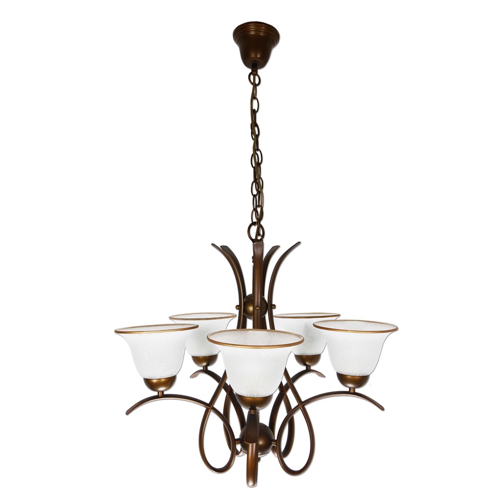 Ndricues i varur klasik E27-5x60W.Skelet hekuri & poca xhami. Ndriçuesi i varur i stilit klasik do të ishte një zgjedhje e përsosur për ti shndërruar hapsirat tuaja të brendshme të banimit, në hapsira mikpritëse dhe plot stil. Ky ndriçues me 5 llampa, me skelet hekuri me linja të kurbëta, të ndërthurur me xhamin e lakuar me ngjyrë të bardhë, perfekt për zonën e ndenjes, për holle pritjeje; ju jep mundësi të pafundme kombinimesh me elementë të tjerë të dekoreve tuaja me ngjyrë bezhë, kafe, të kuqe etj. Kujdesuni për detajet që bëjnë diferencën, që shtojnë stil dhe përsosin estetikisht e funksionalisht hapsirat tuaja me një çmim tepër ekonomik.