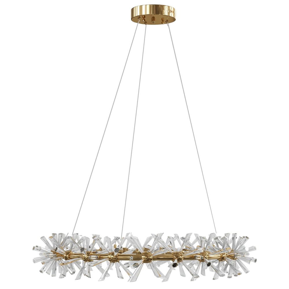Ndricues kristalor i varur, 20 xG4, D60 cm, gold, metal/xham.  Një ndriçues modern, i krijuar me një pamje shumë të veçantë dhe të thjeshtë. I përshtatshëm për dhomë ndenje dhe sallon.