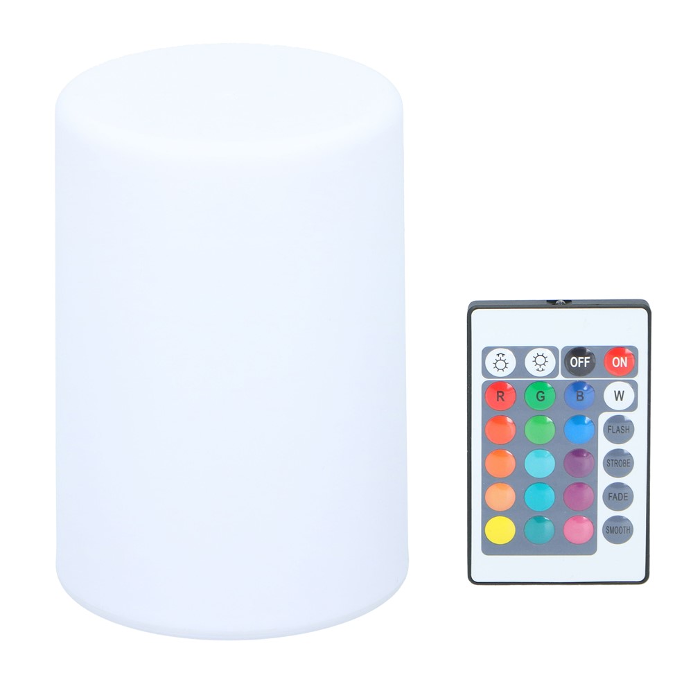 Ndricues LED RGB me telekomande D15, H10cm. Me telekomandë mund të ndryshoni ngjyrat, ta lini të ndryshojne automatikisht ose t'i lini ngjyrat RGB të rrjedhin në njëra-tjetrën në mënyra të ndryshme. Vetëm drita e bardhë është gjithashtu e mundur. Varet vetëm nga atmosfera që dëshironi të krijoni ose në çfarë humori jeni. Mund të vendoset kudo. Në tavolinën tuaj ose në komodinën tuaj. Është gjithashtu argëtuese për t'u përdorur në një festë ose gjatë një darke intime. Drita funksionon me 3 bateri AAA.