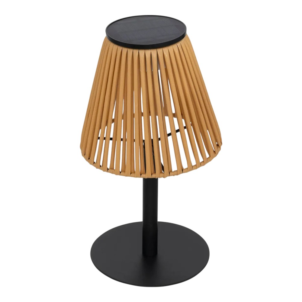 Ndriçuesi me panel diellor ka një lartësi prej 30 cm dhe është i ndërtuar nga metal dhe resin, duke i dhënë një pamje elegante dhe të qëndrueshme. Ky ndriçues ofron dritë të ngrohtë (warm white) dhe mund të ngarkohet përmes panelit diellor ose USB. Ka një kohë funksionimi prej 6 orësh pas ngarkimit të plotë, duke e bërë atë një zgjedhje të shkëlqyer për përdorim të jashtëm dhe të brendshëm.