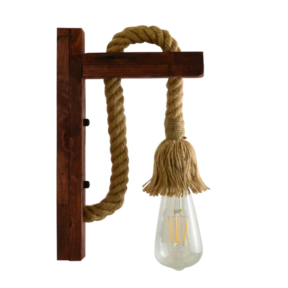 Ndriçues muri E27, me përmasa 23 × 30 cm. I realizuar nga dru dhe litar me përfundim në ngjyrë kafe, ofron një stil rustic dhe dekorativ, i përshtatshëm për ambiente të ngrohta dhe natyrale.