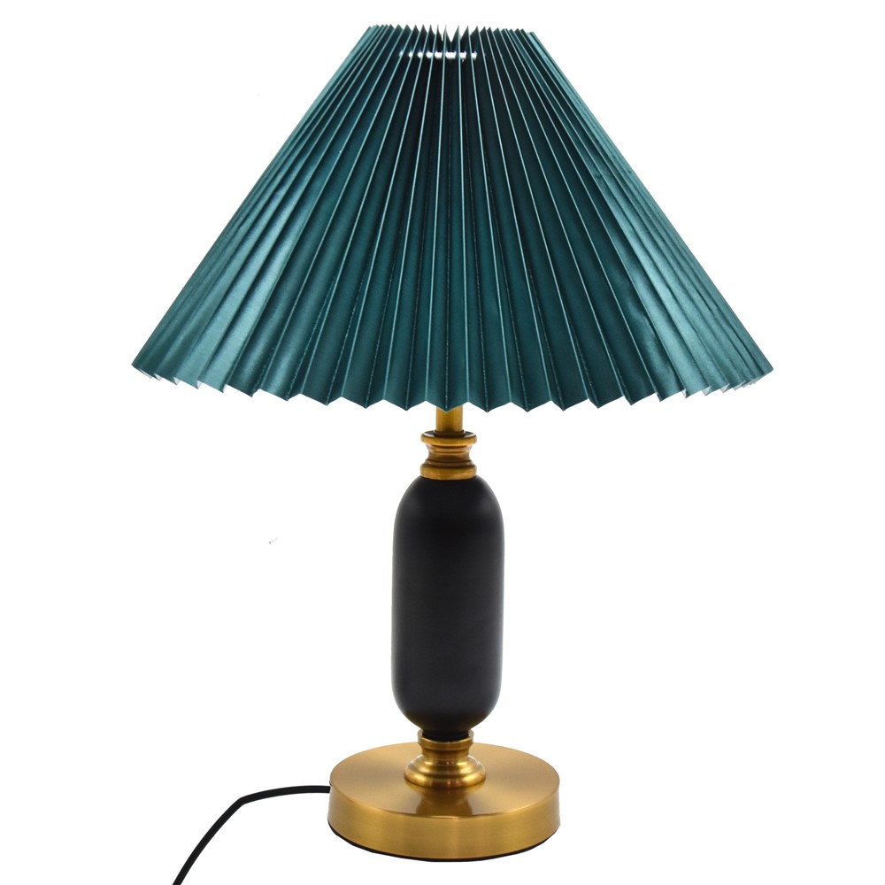 Ndricues tavoline, H48 cm, hekur/tekstil, E27, jeshil. Ndriçuesi i tavolinës do të ishte një zgjedhje e përsosur për ti shndërruar hapsirat tuaja të brendëshme të banimit, të bareve apo restoranteve në hapsira mikpritëse dhe plot stil. Ky ndriçues tavoline i stilit bashkëkohor ju jep mundësi të pafundme kombinimi.