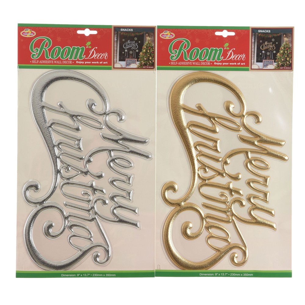 Merry Christmas decorative stickers, plastic, different colors, 42x23 cm