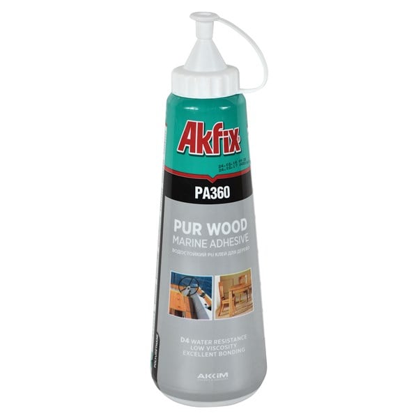Ngjitës druri D4 AKFIKS PA360, 650 gr. Është ngjitës një komponent me bazë poliuretani. Vetitë: I lehtë për t'u aplikur dhe viskozitet të ulët. Realizon ngjitje të fortë dhe rezistente, rezistent ndaj ujit sipas standartit (D4-DIN EN204), mund të përdoret dhe në sipërfaqe pak të lagur, rezistent ndaj temperaturave ekstreme -30°C deri në +100 °C, rezistent ndaj lagështirës dhe kimikateve. Aplikimi: Ngjit dhe bashkon elemente druri, metali, betoni, poliestre, shkume, etj. Për mobilje, produkte varke dhe të gjitha llojet e ngjitjeve që kërkojne rezistencë të lartë ndaj ujit. Përdorimi: mos e përdorni kur temperatura është nën +5 °C. Elementët që do të ngjiten duhet që të jenë të pastër nga pluhuri dhe graso. Një nga sipërfaqet duhet të jetë poroze për të siguruar tharje më të mirë. Njomja pak e sipërfaqes do të sigurojë aderim të fortë të ngjitësit. Përhapni ngjitësin me një furçe në një shtresë të hollë në njërën nga sipërfaqet që do të ngjiten dhe bashkojini brenda 15 minutave (minimumi 2 min). Mbani të ngjeshur elementët bashkë të paktën për 2 orë. Ngjitësi i pa tharë mund të pastrohet me açeton.
