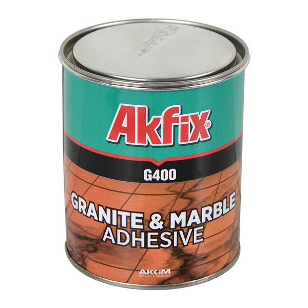 Ngjitës mermeri dhe guri natyral AKFIKS G400, 1000 gr. Është një ngjitës dy komponentësh me bazë rrëshire poliestre. Vetitë: rezistent ndaj rrezeve UV, në gjendje të tharë është rezistent në temperatura nga -10 °C deri +100°C, sipërfaqja e ngjitur është e gatshme për t'u përdorur pas 2 orësh. Nuk ndryshon ngjyrë, plasaritet apo tkurret gjatë kohës së tharjes. Aplikimi: për ngjitjen e gurit natyral, mermerit, granitit, betonit, drurit etj. Përdorimi: sipërfaqja duhet të jetë e pastër nga pluhuri dhe graso. Përzjeni 100 gr të ngjitësit me 1-2 gr tharës derisa masa të bëhet homogjene. Aplikojeni dhe mbani pjesët që do të ngjiten të bashkuara deri sa të thahet.