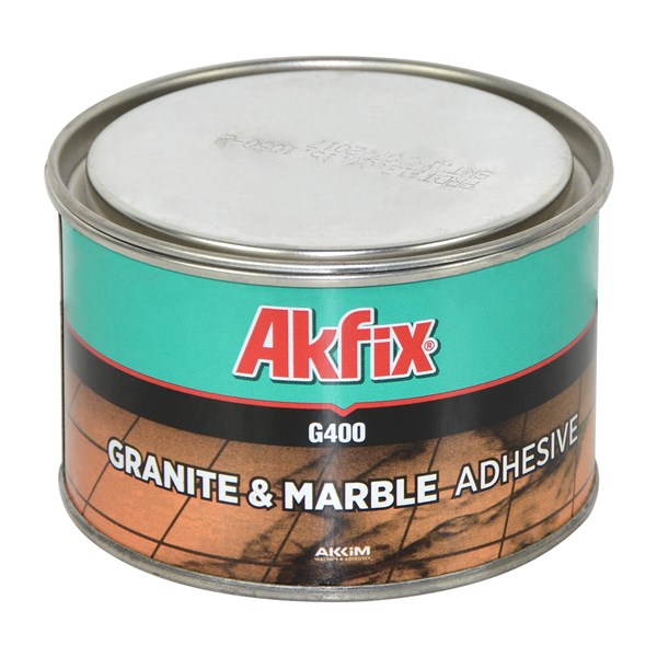 Ngjitës mermeri dhe guri natyral AKFIKS G400, 500 gr. Është një ngjitës dy komponentësh me bazë rrëshire poliestre. Vetitë: rezistent ndaj rrezeve UV, në gjendje të tharë është rezistent në temperatura nga -10 °C deri +100°C, sipërfaqja e ngjitur është e gatshme për t'u përdorur pas 2 orësh. Nuk ndryshon ngjyrë, plasaritet apo tkurret gjatë kohës së tharjes. Aplikimi: për ngjitjen e gurit natyral, mermerit, granitit, betonit, drurit etj. Përdorimi: sipërfaqja duhet të jetë e pastër nga pluhuri dhe graso. Përzjeni 100 gr të ngjitësit me 1-2 gr tharës derisa masa të bëhet homogjene. Aplikojeni dhe mbani pjesët që do të ngjiten të bashkuara deri sa të thahet.