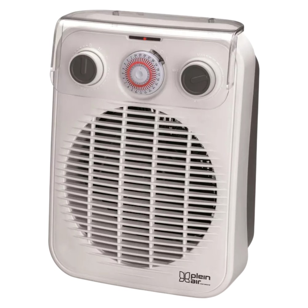 Ngrohës elektrik me ventilator 2000W, i pajisur me një kohëmatës 24-orësh, termostat dhome të rregullueshëm, termostat sigurie kundër mbinxehjes, panel kontrolli të mbrojtur nga një derë, 2 nivele fuqie (1000W/2000W), çelësa përzgjedhës kontrolli dhe një dorezë të pasme. Niveli i mbrojtjes IP21. Ideal për ngrohjen e apartamenteve, banjove, dyqaneve, zyrave, dhomave të pritjes dhe çdo hapësire tjetër që kërkon një burim nxehtësie dhe një stil modern. Sipërfaqe mbulimi 20 m². Kohëmatësi 24-orësh lejon programim automatik të ndezjes/fikjes. Dera rezistente ndaj pikave, e cila mbron panelin e kontrollit, lejon përdorim të sigurt në mjedise me lagështirë.