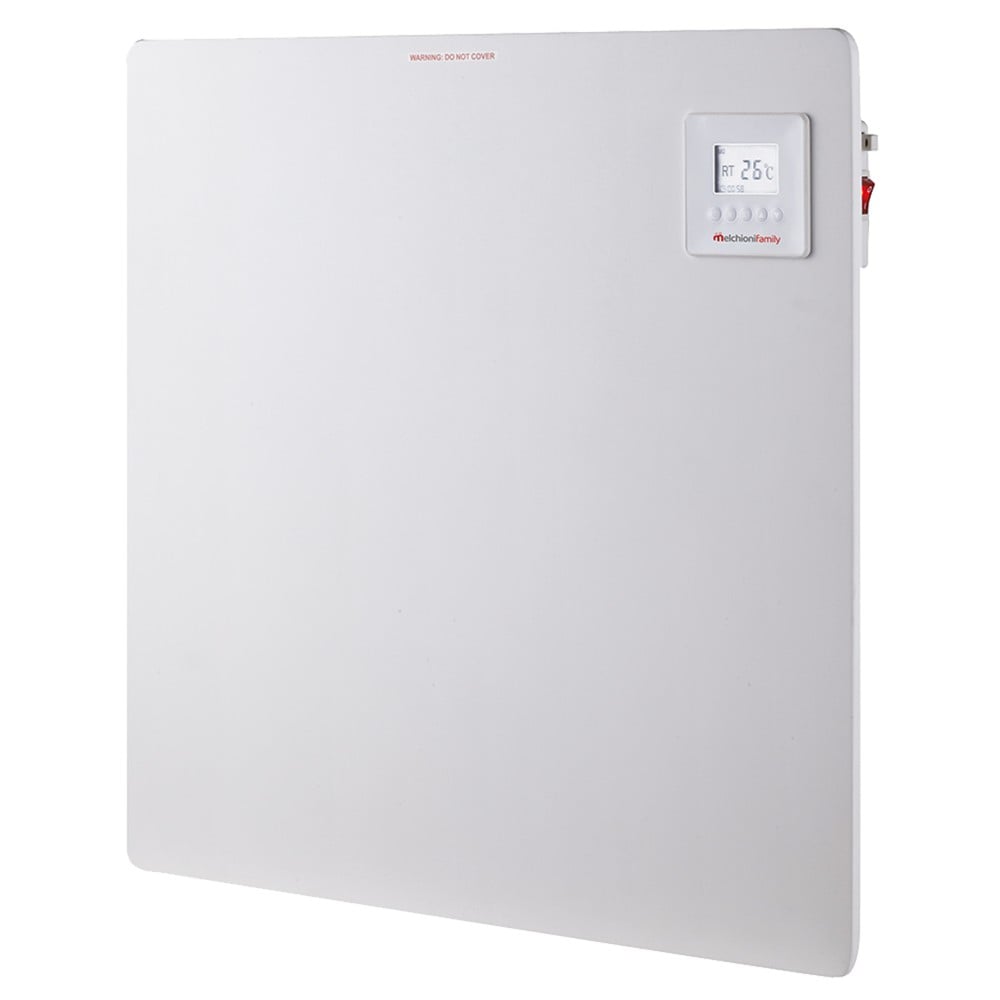 Panel ngrohjeje me material qeramik Melchioni. Ekonomik falë konsumit të ulët. Nuk përdor motorë dhe përdor rrjedhën natyrale të ajrit. I sigurt dhe efikas, nuk ka sipërfaqe të nxehta dhe është i sigurt për praninë e fëmijëve dhe kafshëve shtëpiake. Mund të lyhet. Ekran dixhital me shfaqje të temperaturës së caktuar. Mund të varet në mur ose mund të përdoret në dysheme falë këmbëve të përfshira. I përshtatshëm për dhoma 9-12m².