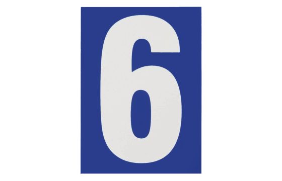Numer 6, PVC, me sfond blu, me adeziv, 65x90mm