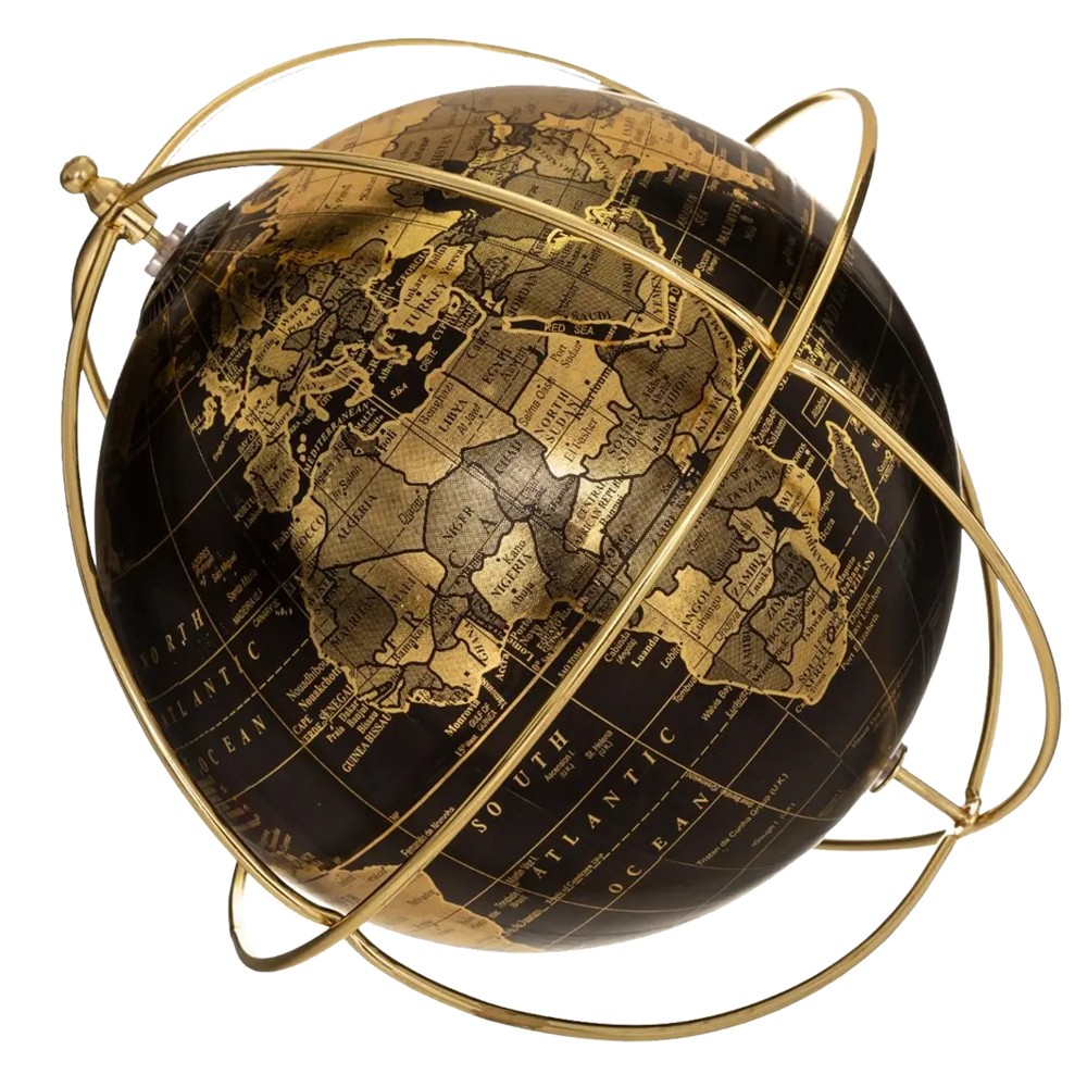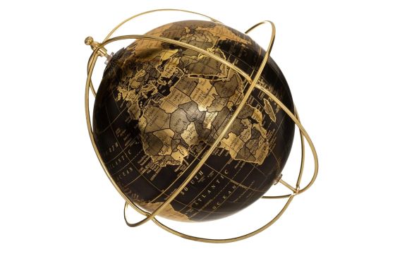 Objekt dekorativ Globe,material poliresin/metal,ngjyra të ndryshme. Përmasa 28x26.5xH21 cm. Kombinimi i zi dhe arit krijon një dekorim elegant që do t'i japë dhomës një karakter unik. Harta e botës në anglisht do t'ju lejojë të lustroni gjuhën tuaj dhe do t'ju ndihmojë të planifikoni udhëtimin tuaj.